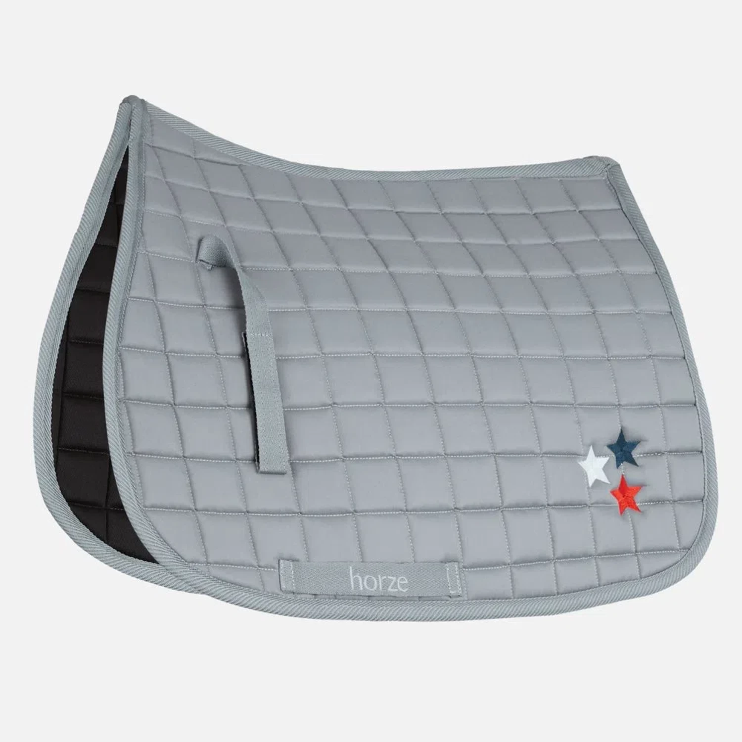 The Horze Alex saddle pad is equipped with square quilting to provide comfortable padding. Two straps easily attach to your saddle. The star application adds a pop of color.