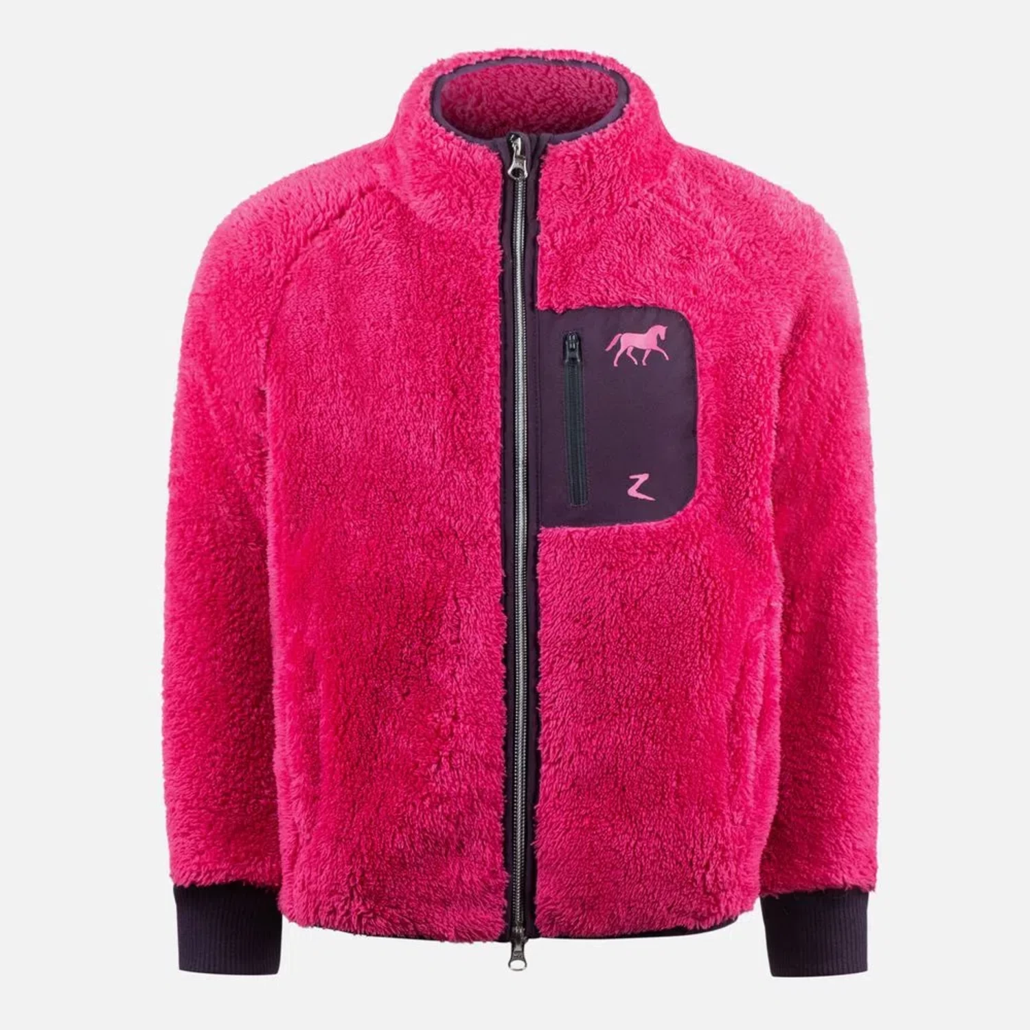 Keep your children warm around the barn with the Horze Landry Kids Fleece Jacket. This ultra furry jacket has a trotting pony at the chest and nice elastic cuffs, hem and collar to keep winter winds out. The side zipper pockets and bonus chest pocket hold treasures. This practical jacket is breathable and will become a cold weather favorite.