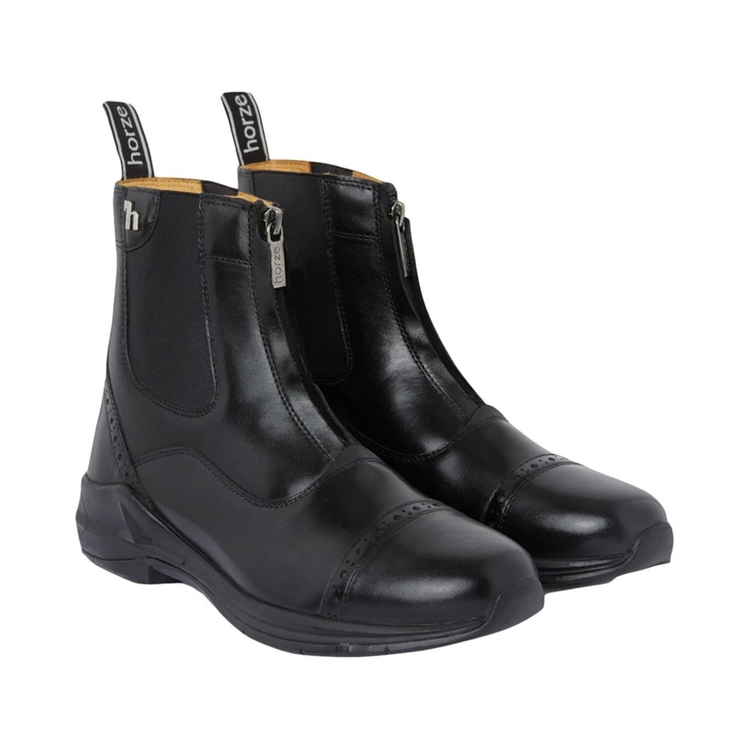Sporty everyday jodhpur boots with classy details. These leather boots are decorated with a beautiful brogue detail on the toe cap and along the heel. For easy on and off, the boot has a sturdy black YKK front zipper, a logo pull tab and elastic inserts on both sides of the ankle. The outer elastic features a small patch with a metal ‘h’ logo. The Thinsulate lining of the foot part keeps your feet comfortable warm on cold spring days.